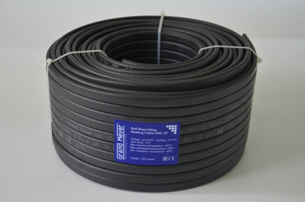 Саморегулирующийся нагревательный кабель «Grand Meyer» типа UHC-25 - это ленточный электрический нагреватель с параллельными проводниками.